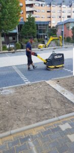 Naše usluge ŠTO RADIMO? UGRADNJA OPLOČNIKA POSTAVLJANJE RUBNJAKA I KANALICA PRIPREMA TAMPONA I NIVELACIJA TERENA ISKOPI MANJEG I SREDNJEG OPSEGA